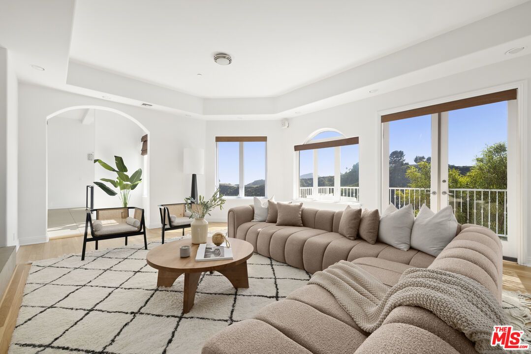 This thoughtfully designed residence combines clean, modern architecture with exceptional scale and natural light throughout. Ideal for art collectors and entertainers alike, the home features expansive walls, soaring ceilings, and skylights that illuminate its open layout. The main level offers formal living and dining rooms, a large entertainment room, and a chef's kitchen with premium appliances. Six bedrooms include a stunning primary suite with dual spa-style bathrooms and oversized walk-in closets. Two additional en-suite bedrooms on the same level offer both privacy and proximity, perfect for family living. On the lower level, two guest suites- each with its own living area and kitchenette- provide comfort and flexibility for extended stays or multigenerational living. Additional amenities include a library, gym, sauna, custom built-ins, wine storage, and multiple wet bars. French doors open to private balconies with sweeping canyon, city, and ocean views, while the backyard offers a pool and spa designed for entertaining. Located in one of Bel Air's most prestigious neighborhoods, this home delivers extraordinary space, luxury, and lifestyle.